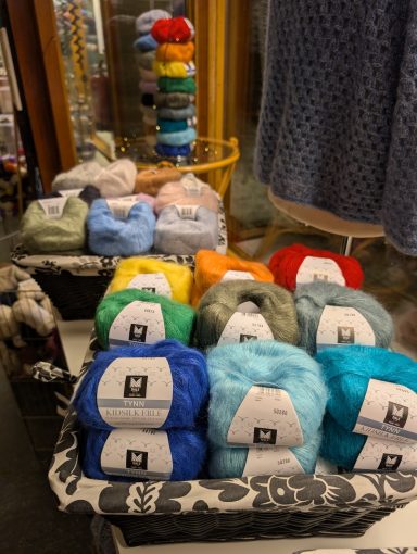 I butiken erbjuder vi ett stort utbud av olika garner, tillbehör, knappar samt broderier i flera olika prisklasser.